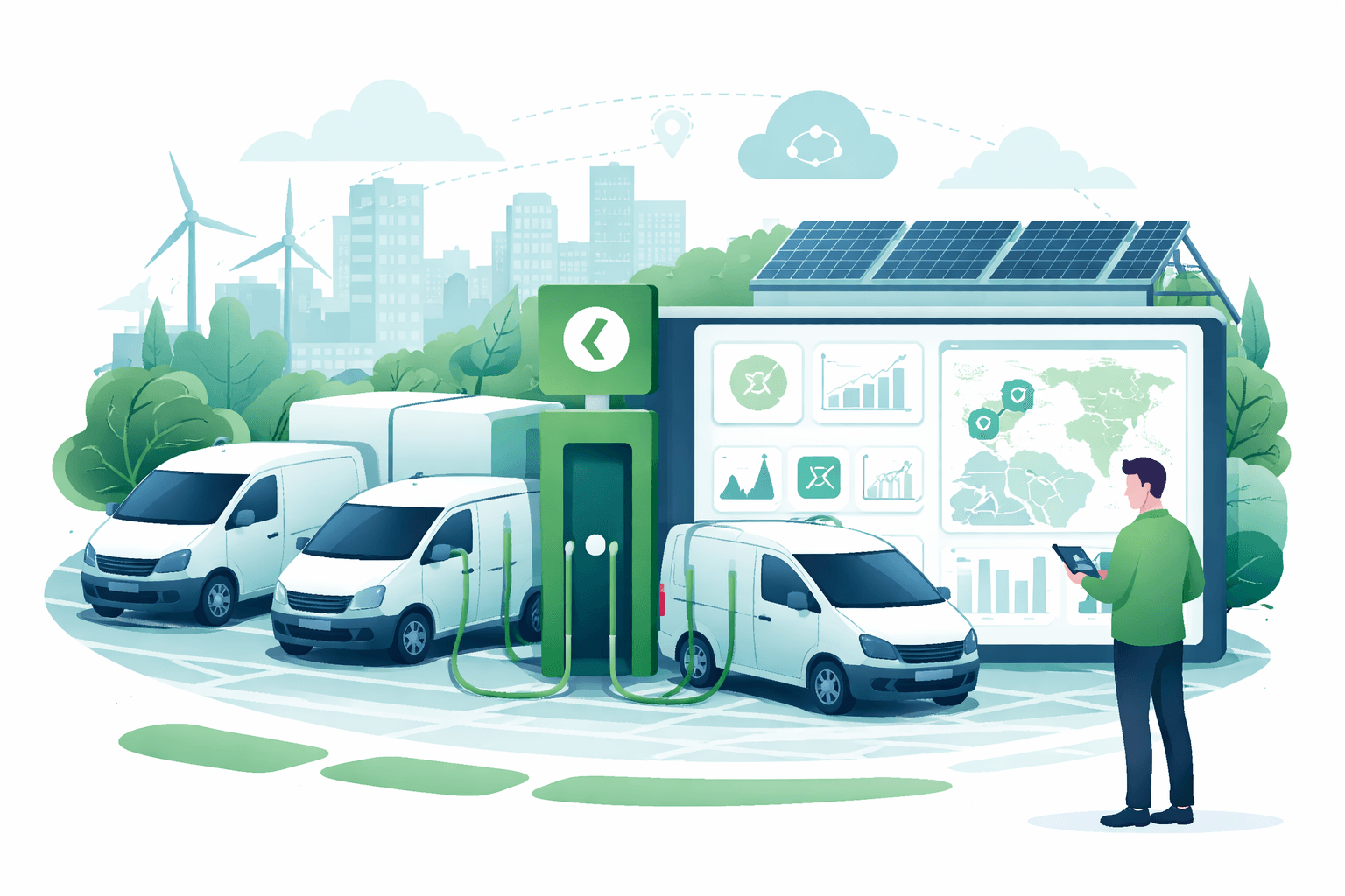 A data‑driven guide to commercial EV fleet management: right‑size vehicles, optimize charging, control demand charges, and hit TCO and emissions targets.