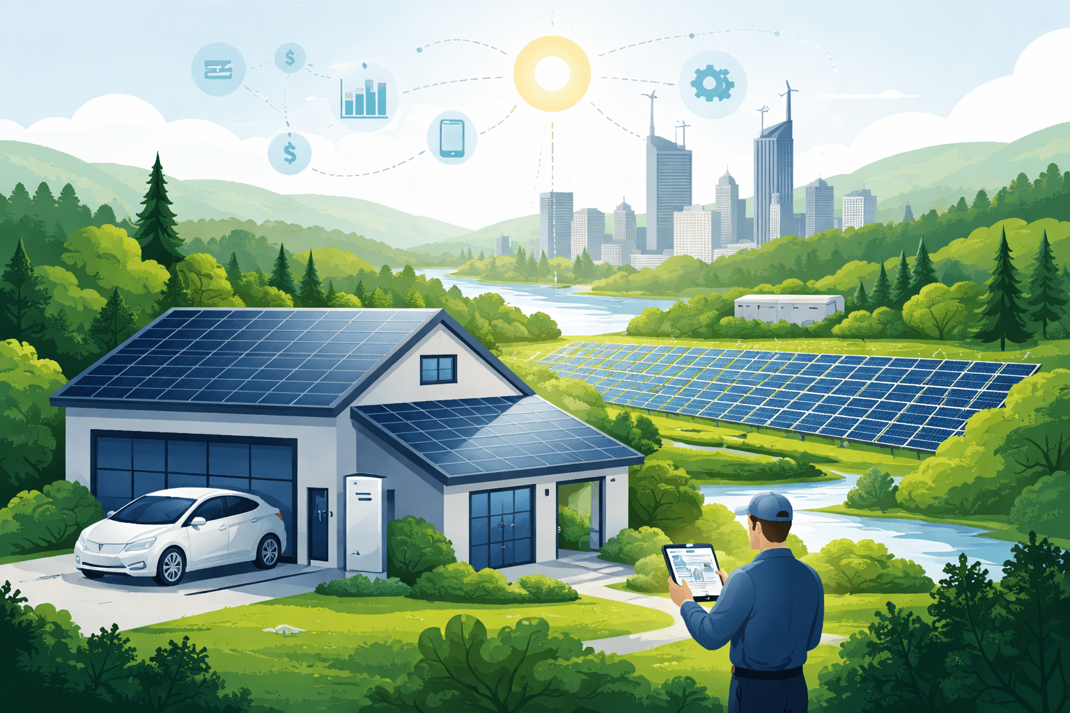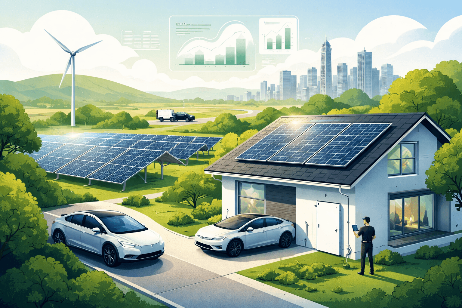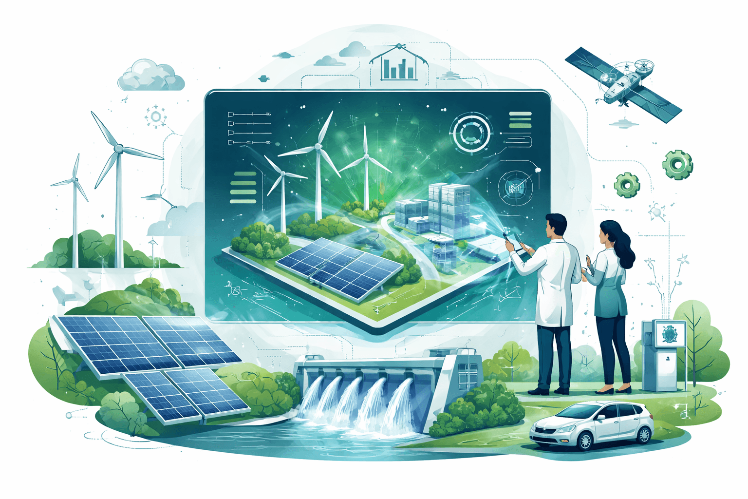 Solar, wind, hydro, and emerging clean energy technologies powering a sustainable future.