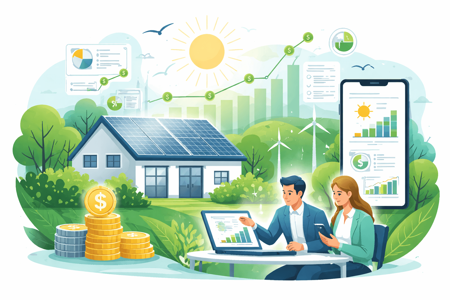 Solar, wind, hydro, and emerging clean energy technologies powering a sustainable future.