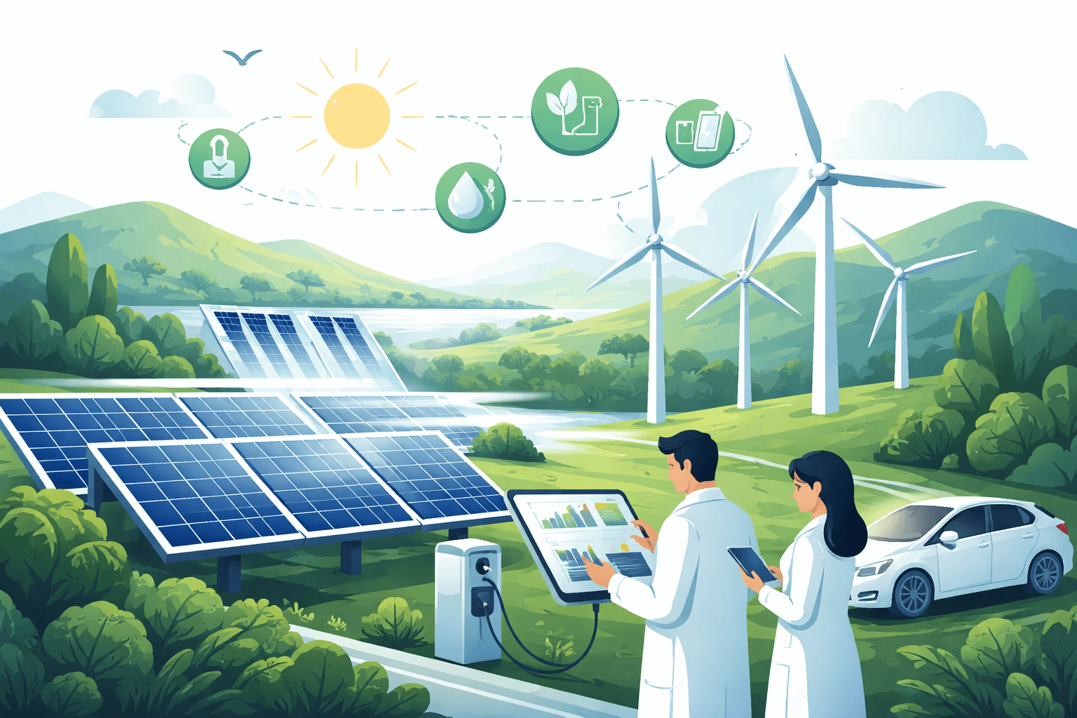 Solar, wind, hydro, and emerging clean energy technologies powering a sustainable future.