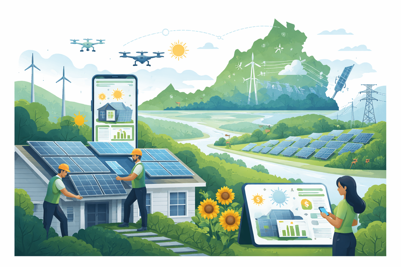 Solar, wind, hydro, and emerging clean energy technologies powering a sustainable future.