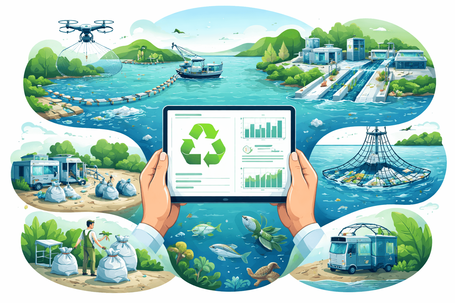 Ocean plastic flows can drop ~80% by 2040 with upstream cuts, better collection, EPR, and targeted river interception—far more effective than ocean cleanups.