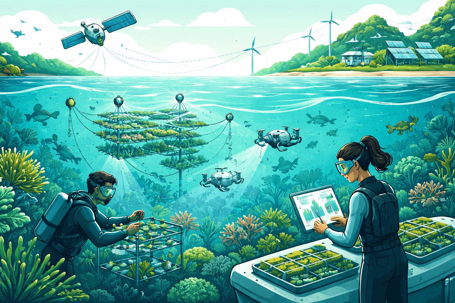 - Monitoring at scale: Satellites (e.g., Allen Coral Atlas), drones, and AI reduce survey costs and standardize data.