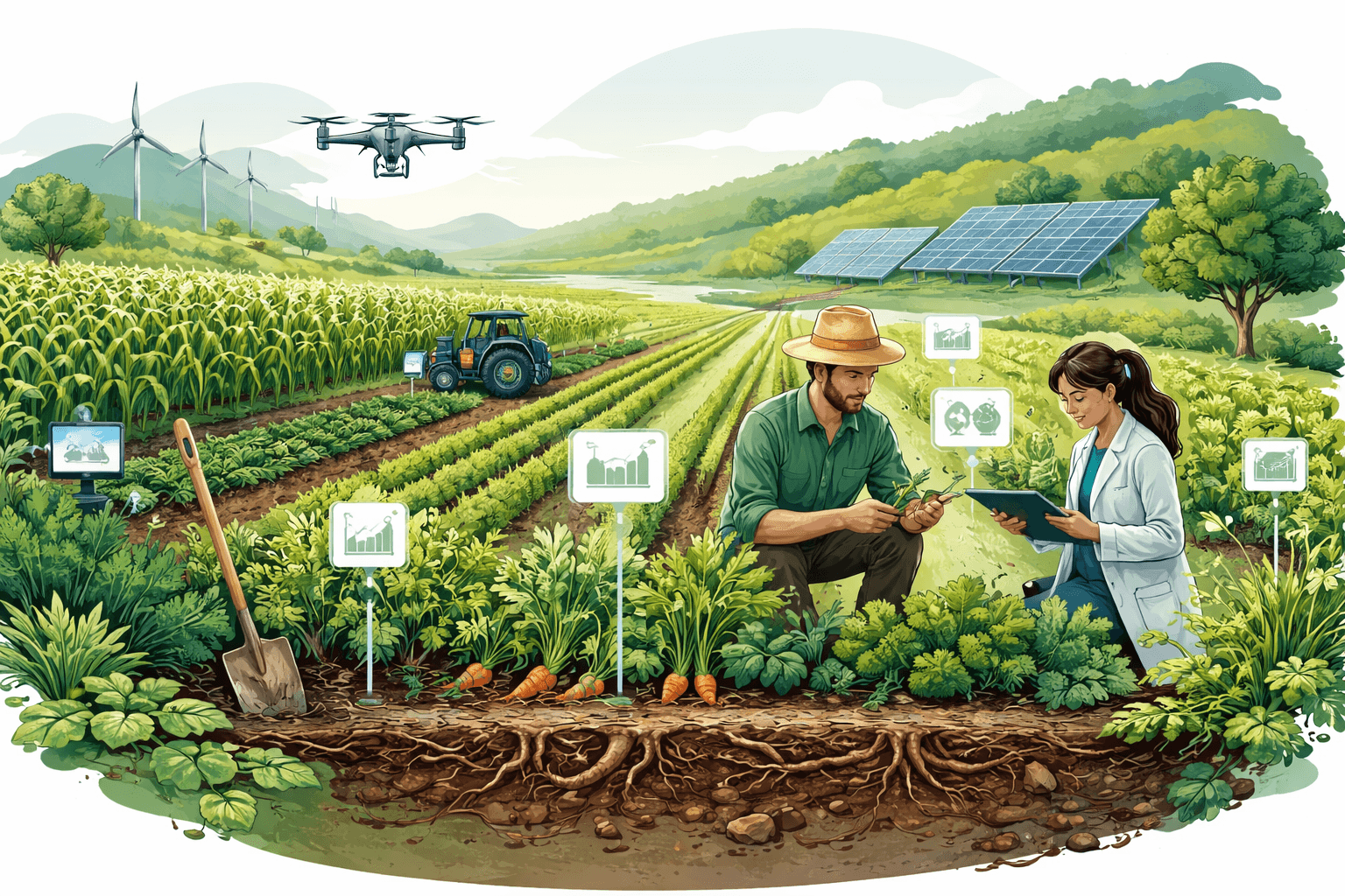 - Living roots and organic amendments increase biological nitrogen fixation (with legumes), enhance mycorrhizal P uptake, and buffer nutrient release. Over time, some farms reduce synthetic N rates by integrating legumes and improving timing—without sacrificing yields. Reduced fertilizer and fuel use can lower operating costs and emissions.
