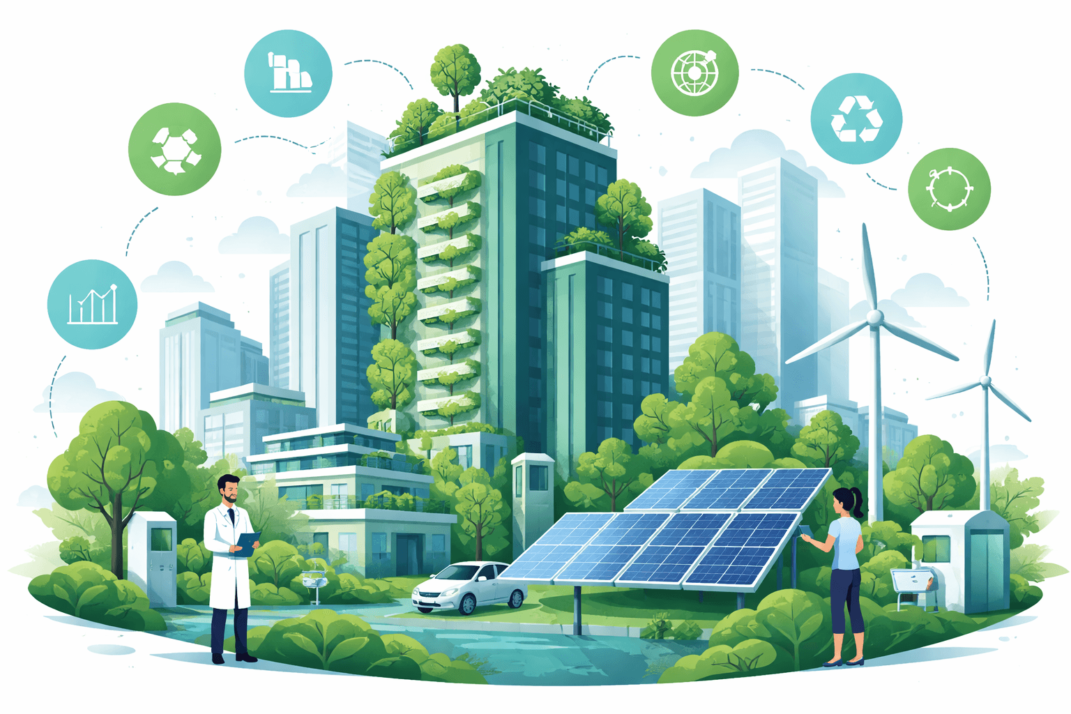 - Water and urban ecosystems: Green roofs/façades attenuate stormwater and heat, supporting pollinators and urban cooling.
