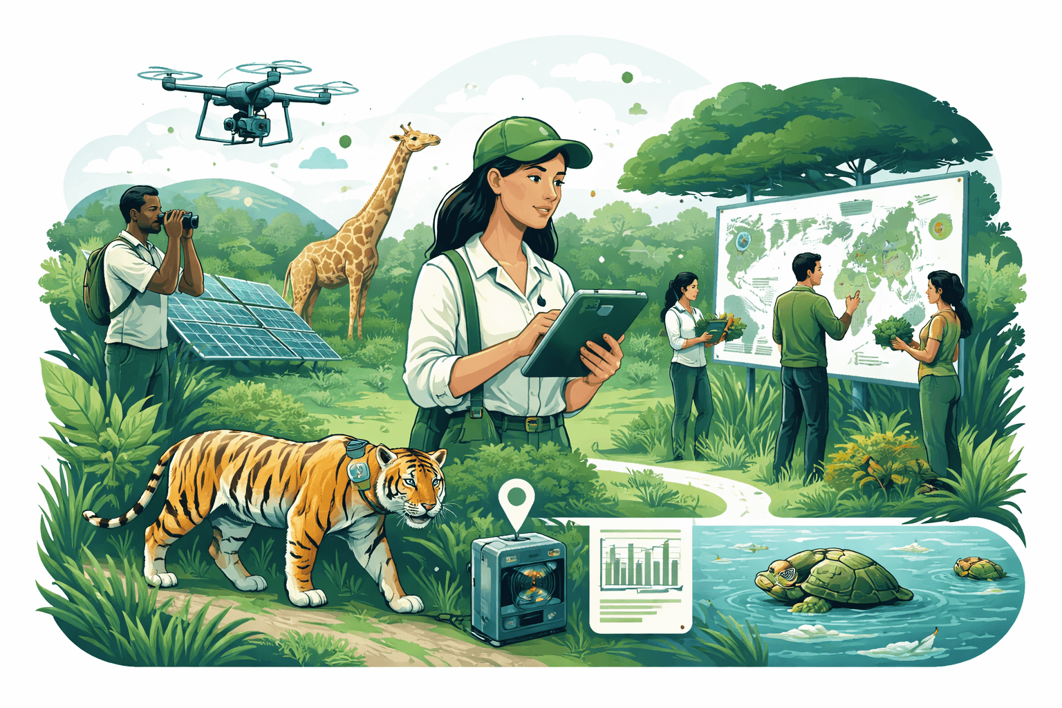 - Genomics at landscape scale: Environmental DNA and population genomics will detect cryptic declines, track gene flow through corridors, and flag disease before outbreaks spread.